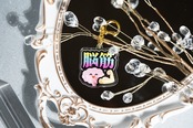 裏面は透明仕様で軽やかに、バッグや鍵などにもつけやすい縦長タイプ。